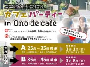 自治体主催等開催日:2026.3.1川崎町婚活会イベント「カフェパーティ」【A】25歳~35歳対象