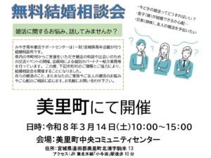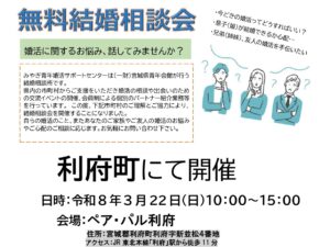 みやぎ結婚支援センター「みやマリ!」では、さまざまな出会いを支援しています。婚活は、はじめの一歩が大切です。