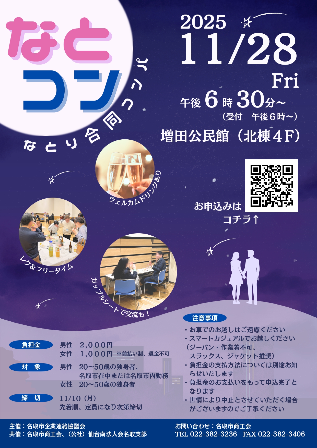 名取市企業連絡協議会では、今年も「なとコン」(なとり合同コンパ)を開催します!