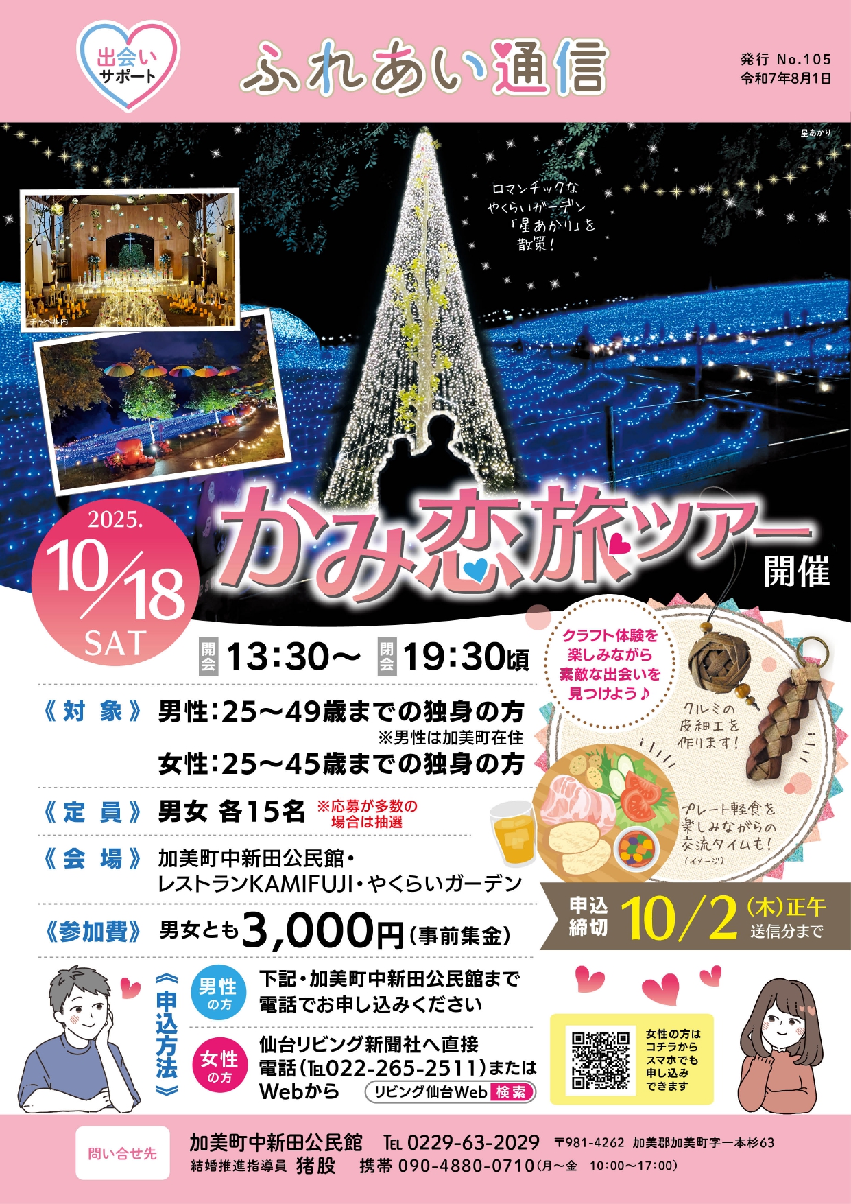 それなら、加美町×仙台リビング新聞社が贈る婚活イベント「かみ恋旅ツアー」へ。