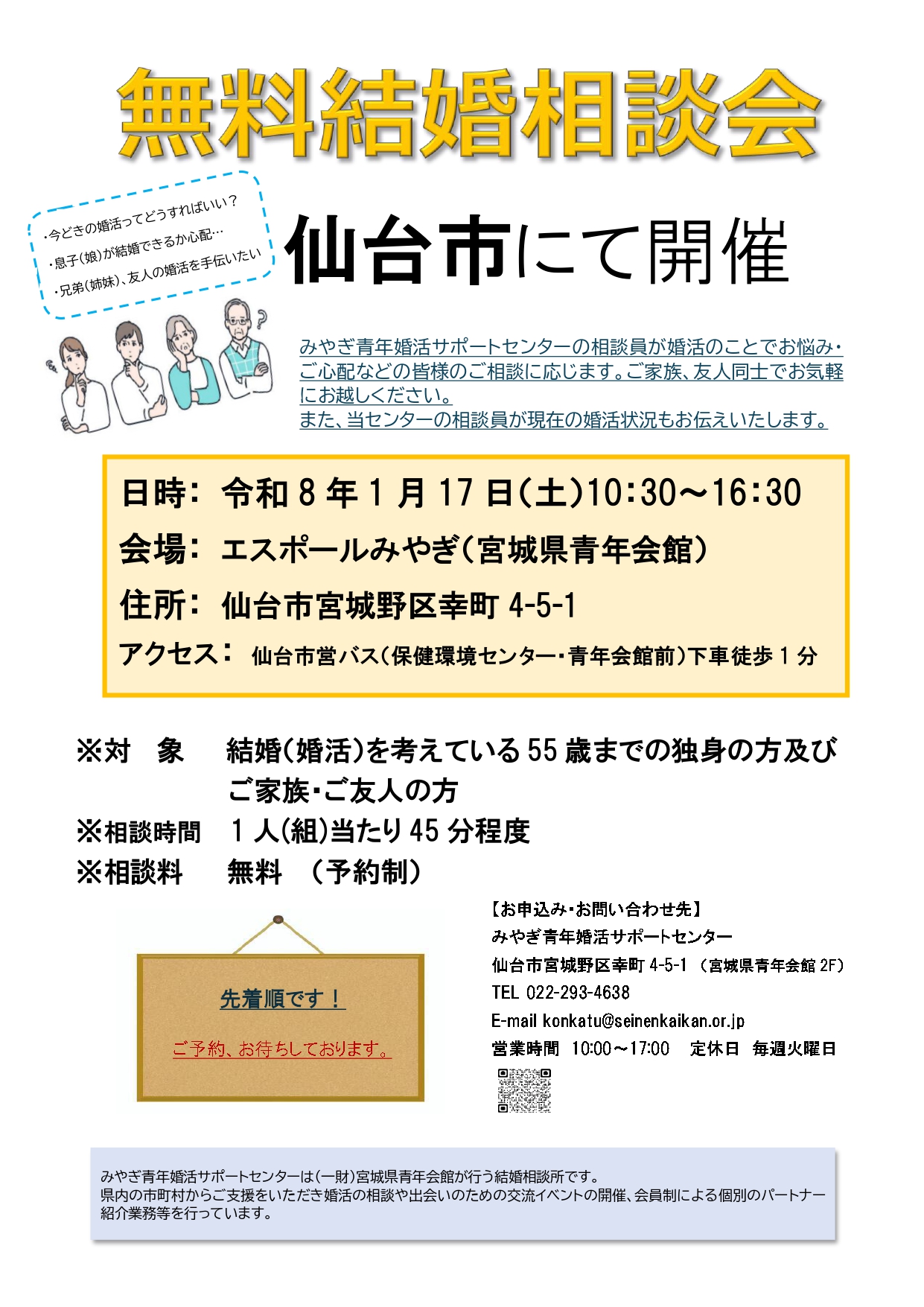 ■申込・問い合わせ:みやぎ青年婚活サポートセンター