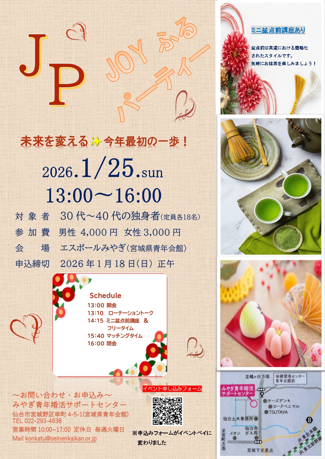 〒 983-0836仙台市宮城野区幸町4-5-1(宮城県青年会館)