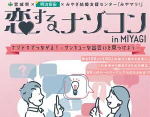 センター主催開催日:2026.2.15\1月14日より一般応募開始!/【宮城県主催】恋するナゾコンinMIYAGI ナゾトキでつながる!~サンキューな出会いを見つけよう~